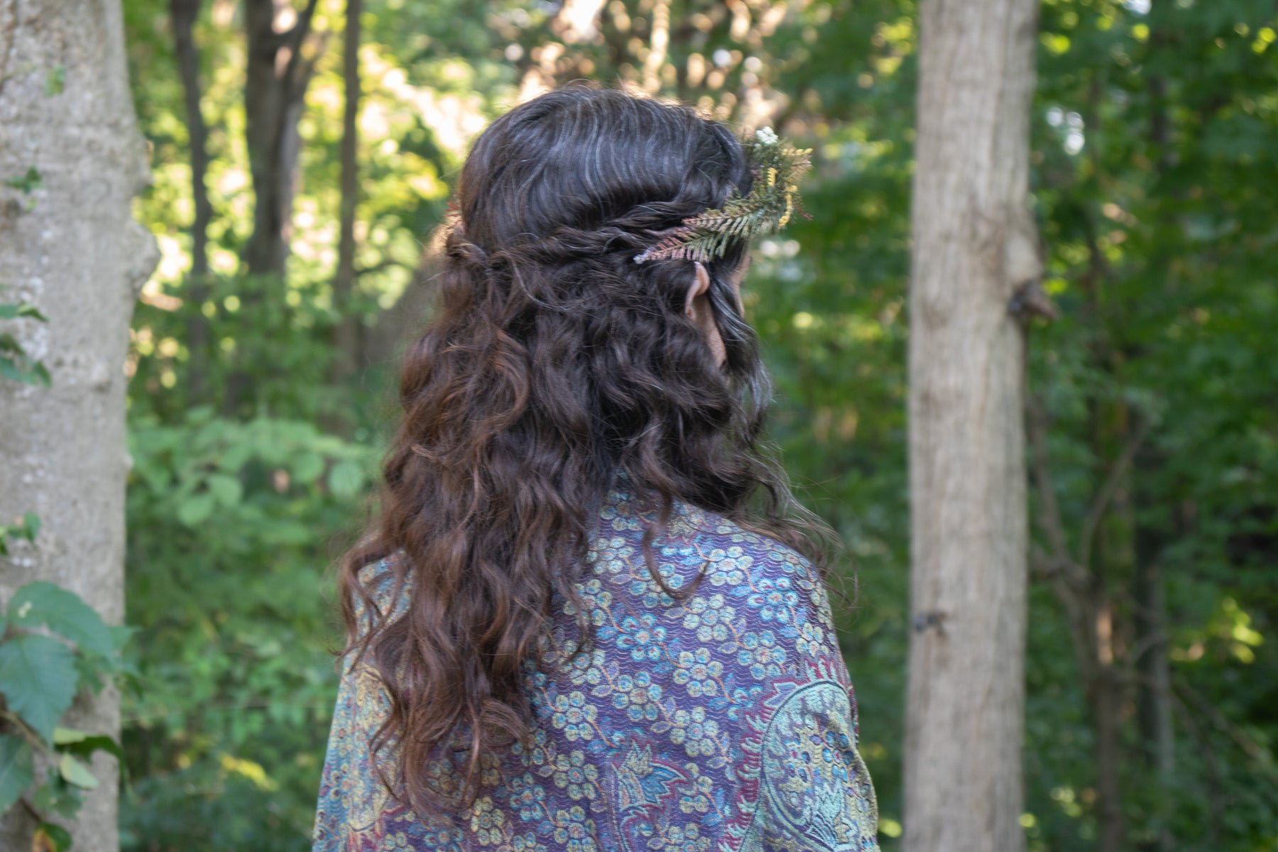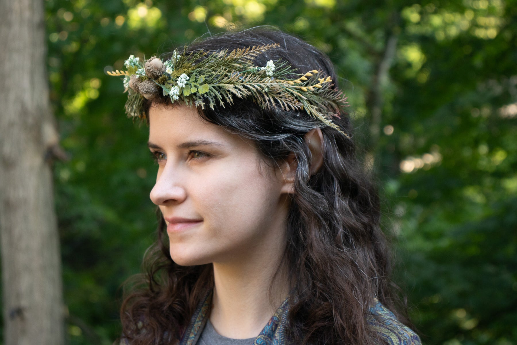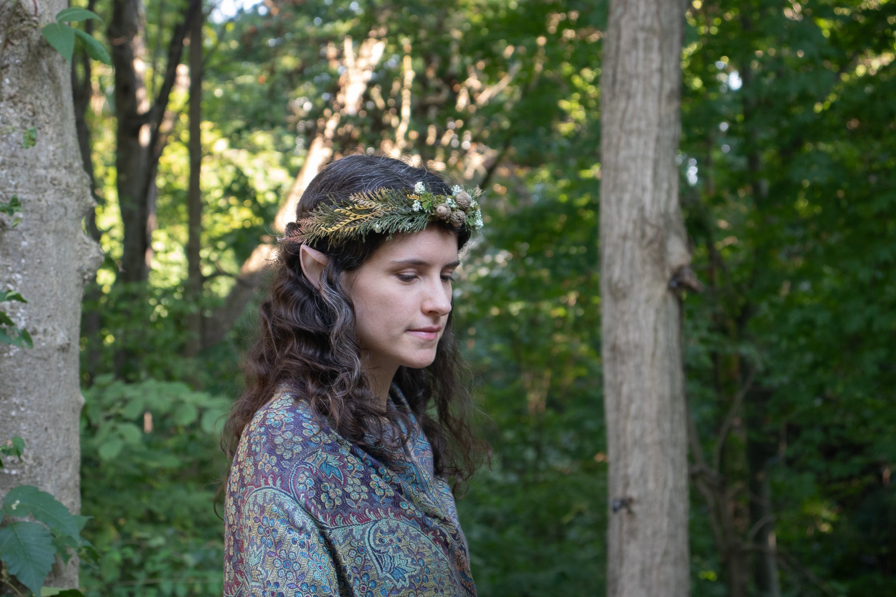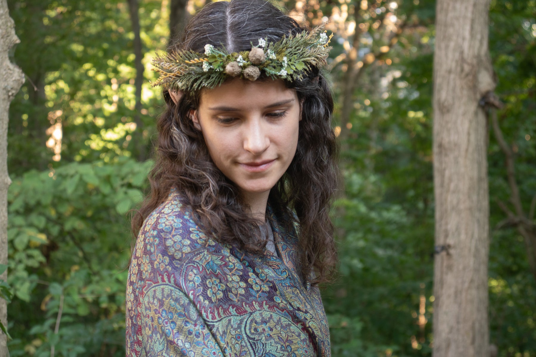 Make any day a special day to celebrate and honor Mother Earth with this beautifully made crown! Elegant, one of a kind and ready to wear to your special occasion. Wrapped wire base, lightweight yet strong and flexible making it adjustable to any head size or hair style. Wear it as a headband, across the forehead or simply tucked into the back of your hair. Comes with a ribbon to tie (optional to wear).